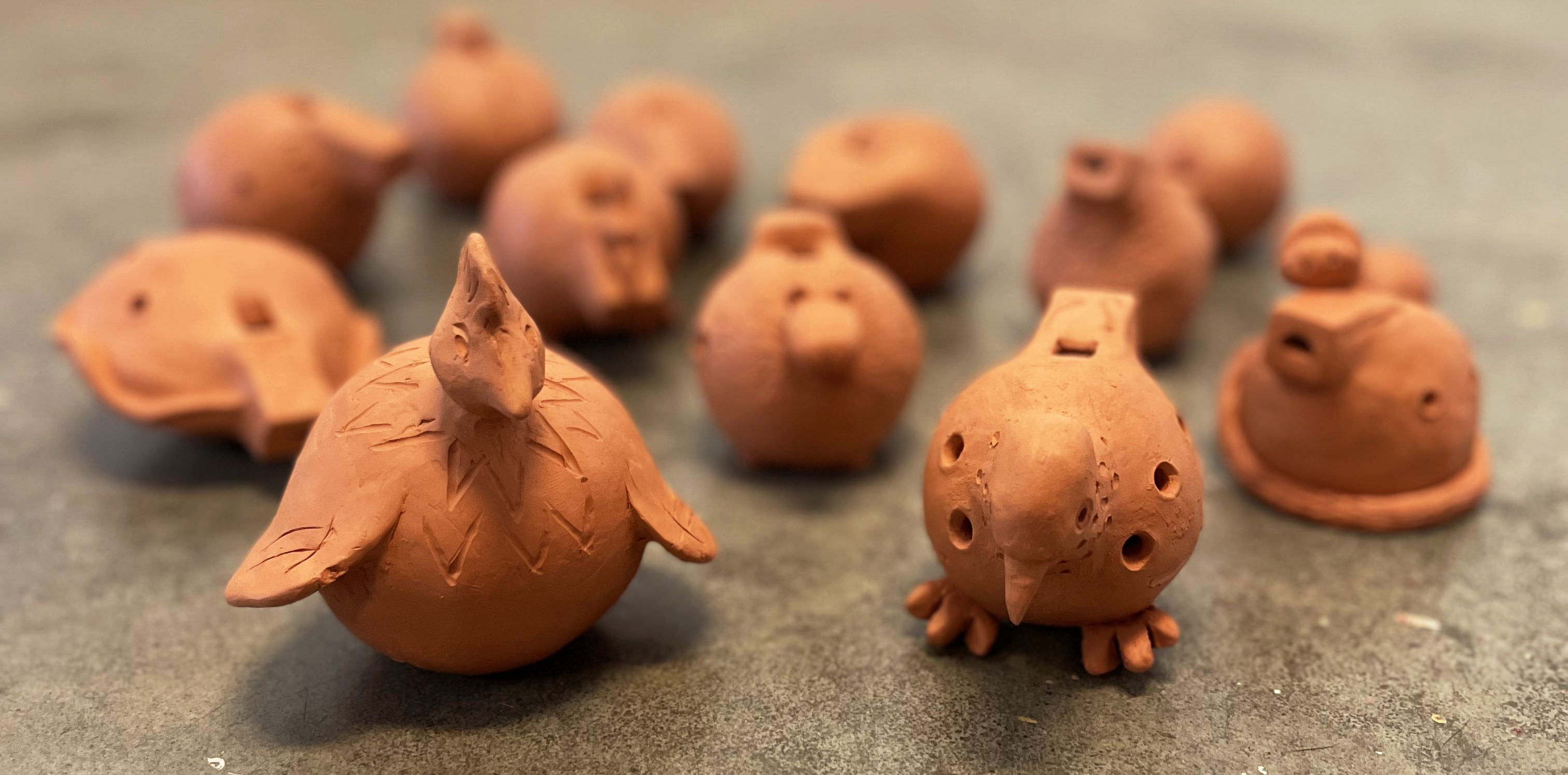 In this hands-on workshop we will learn about ceramic musical instruments that have been made across Central and South America for thousands of years and learn to build our own working clay flutes. All materials, supplies and firing are included. No previous experience with clay, instruments, or music is needed!